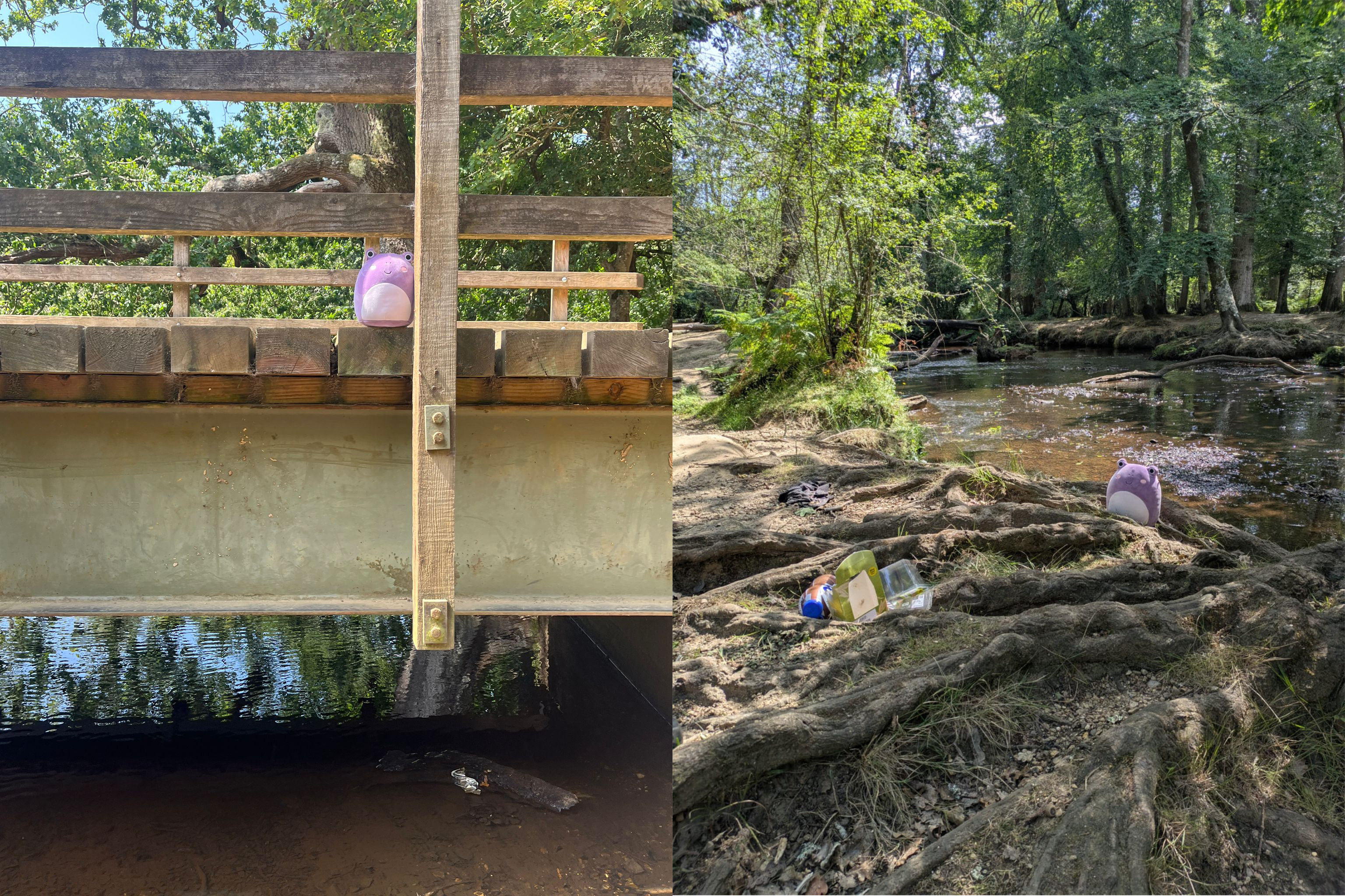 After another terrifying night of being strangled and stroked by Lucy, it was again time for Philomena to break free from the shackles of Gary and enter the back pack once more to visit the New Forest. Philomena posed in various spots, attempting to hide from the judgemental stares of onlookers who think it is weird that three 19 year olds carry about a purple toad. But Philomena didn't care about the haters. Most memorably, she looked on with second hand embarrassment as Lucy limply and pathetically clung to a tree which had fallen across a river before falling in. What an imbecile!
